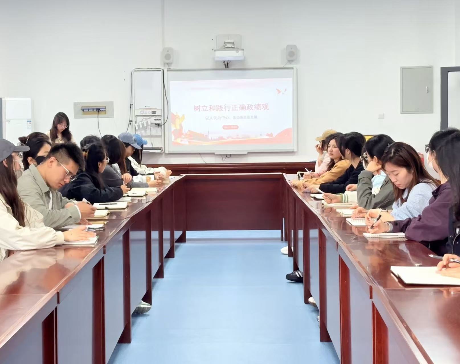 为深入学习贯彻习近平总书记关于树立和践行正确政绩观的重要论述,引导支部党员深刻领悟新时代中国共产党人的价值追求与责任担当,4月10日,马克思主义学院2024级硕士研究生党支部在煤炭科技中心320会议室开展“树立和践行正确政绩观,夯实青年党员思想根基”主题党日活动,支部全体党员参会学习。
