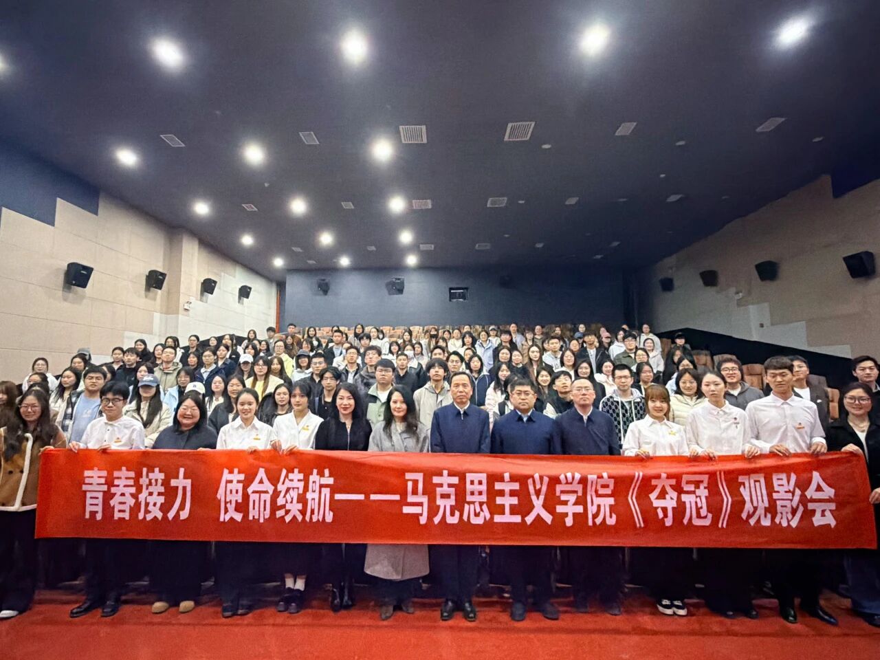 为深化青年思想政治引领,厚植家国情怀与奋斗精神,引导青年学子坚定理想、挺膺担当,3月12日晚,马克思主义学院团委于煤炭科技中心四楼电影院举办“青春接力,使命续航”特色主题团日活动。西安科技大学党委副书记陈春林、副校长张金来、校团委书记高欣、校团委副书记孙小娜、马克思主义学院党委副书记韩帅、马克思主义学院学工办主任、团委书记李超出席本次活动,学院全体研究生参与。本次活动以观影悟精神、朗诵传情怀、宣讲践初心为脉络,融合沉浸式学习与理论宣讲,让青春力量在传承中凝聚,使命担当在实践中续航。